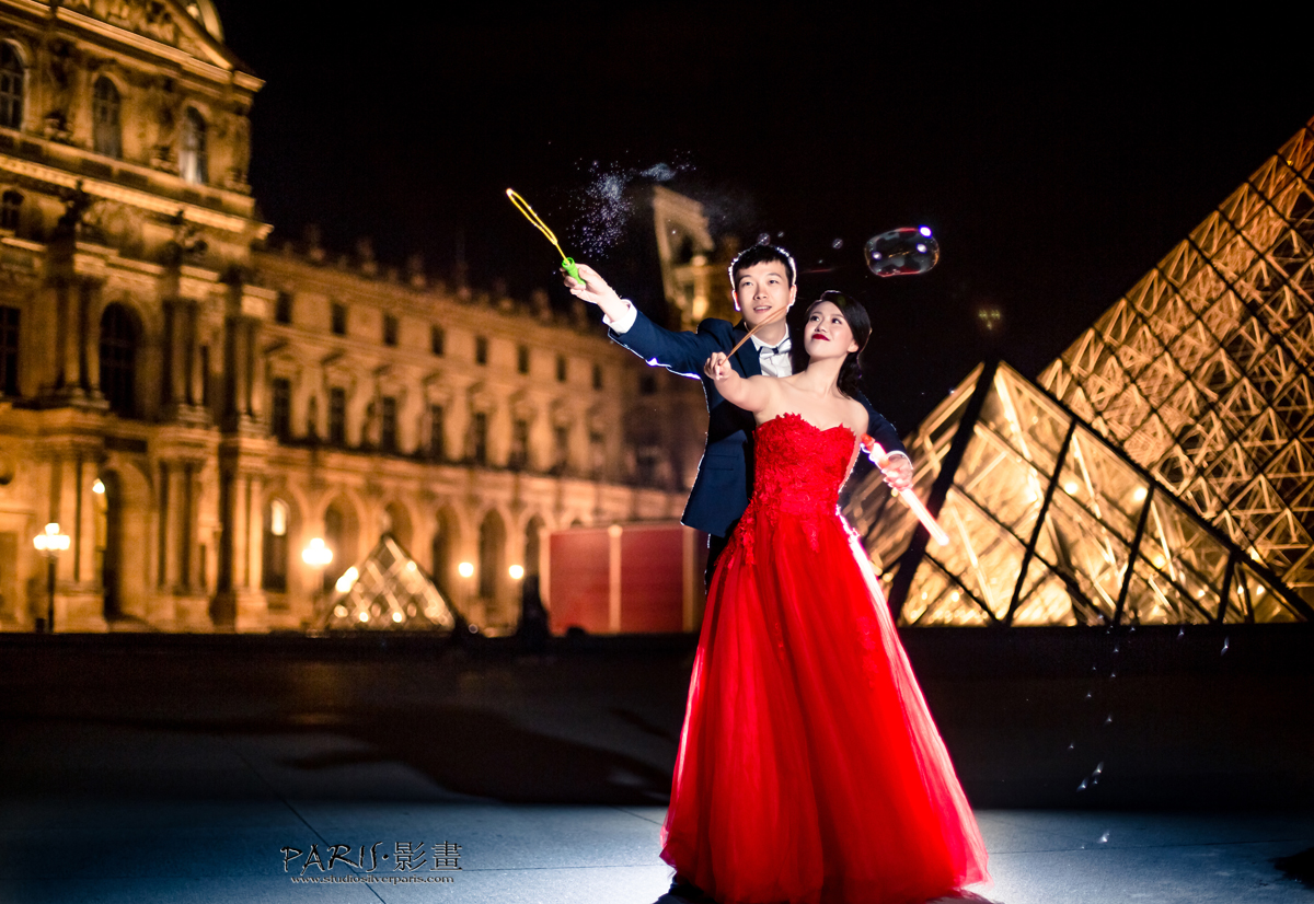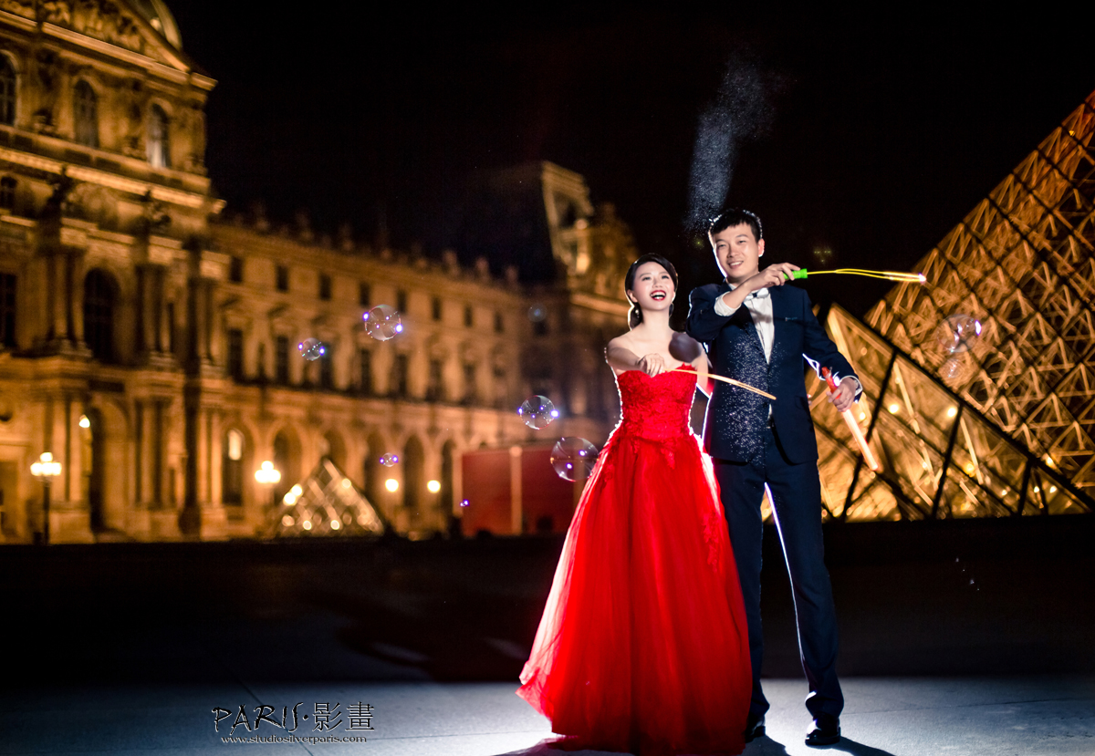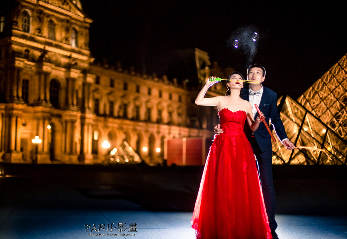 这时我们开始了吹泡泡活动,你看他们又是吹又是挥的,超级显恩爱! 卢浮宫