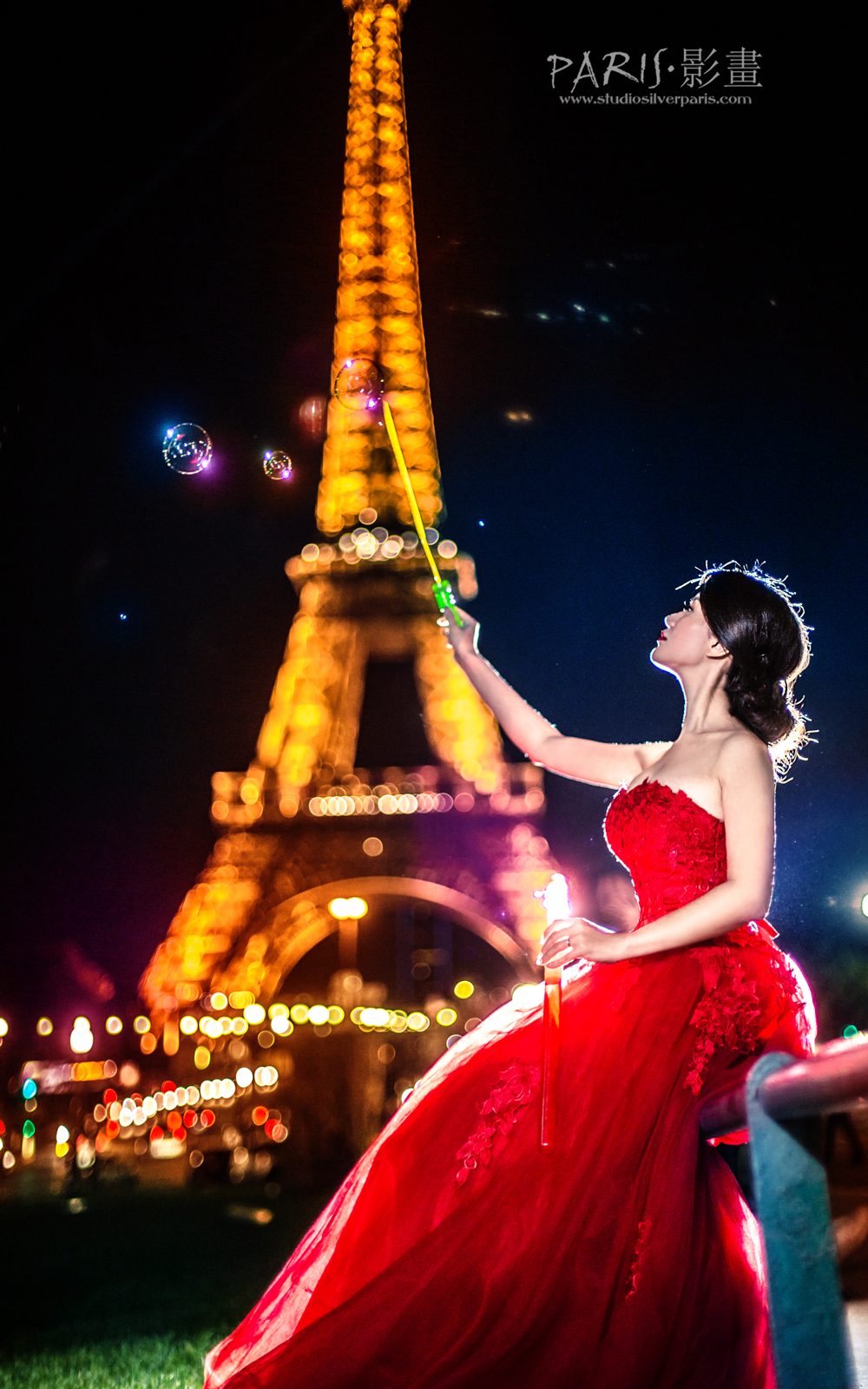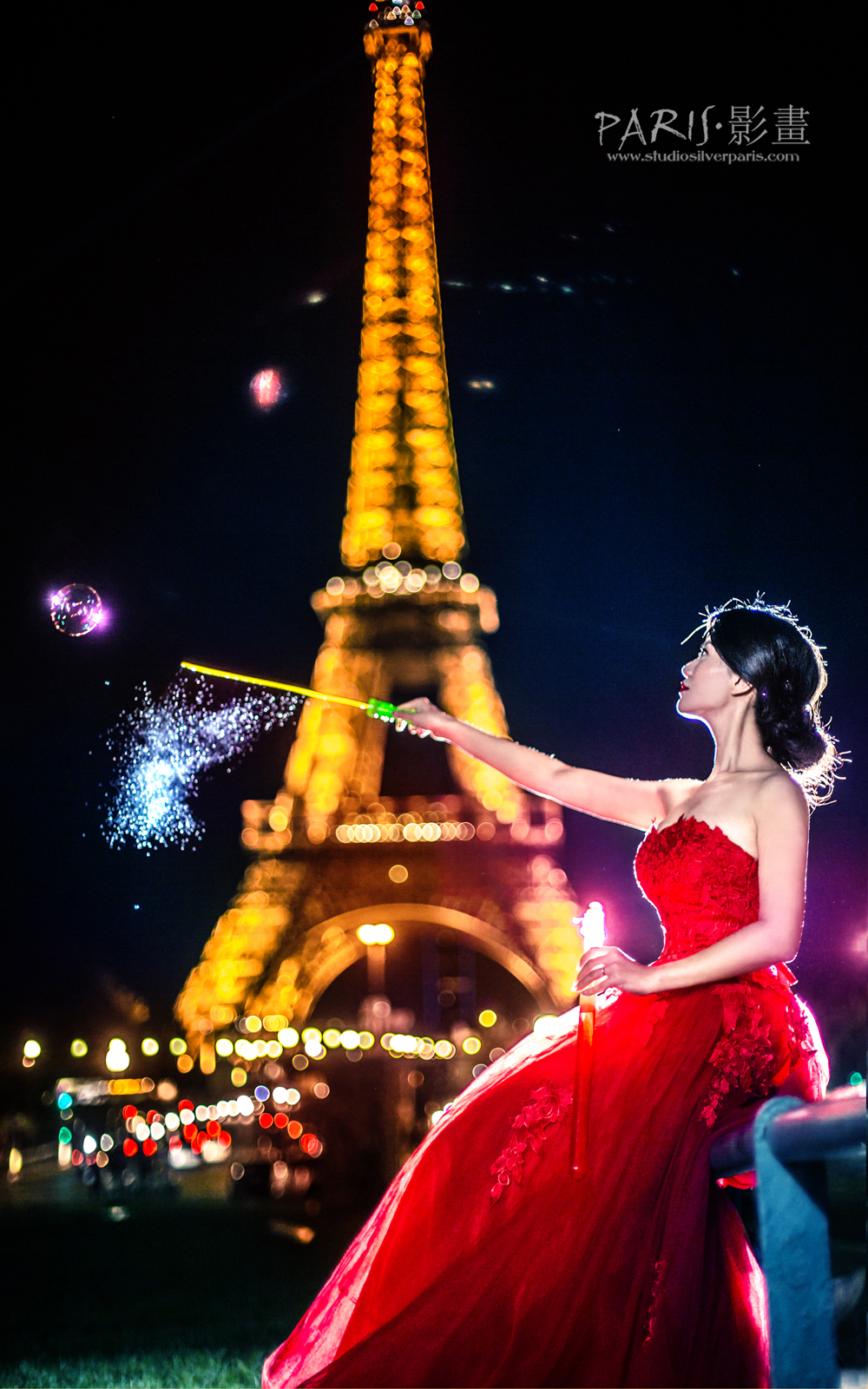 还没完哦!还有埃菲尔铁塔呢,子衿坐在那儿,挥着泡泡棒,活像魔术师挥着她的魔术棒,泡泡梦幻般的变出来了 埃菲尔铁塔